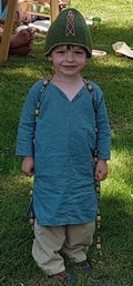 Das Weibe Heike Birgersdottir sorgt für passende Gewandung nebst Stickereien, Zierbeschläge, Anhänger und Fibeln. Den Rest des Tages bemüht sie sich um ein geselliges Lagerleben, stickt am Rande des Lagers oder eilt ihrem kleinen Spross hinterher.